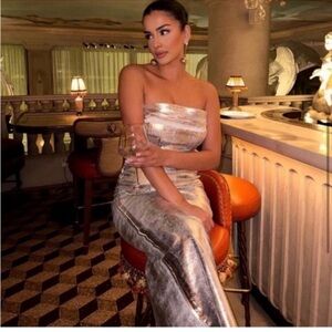 New NWT Zara Woman Fitted Metallic Dress in Silver size Small REF 9632/242