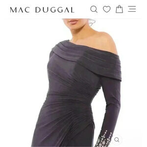 New NWT Mac Duggal 26485 Foldover Long Sleeve Jeweled Midi Dress ($498) Size 10