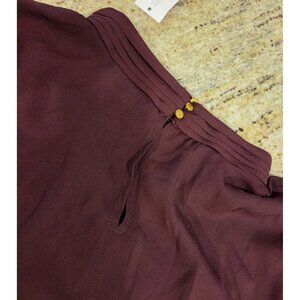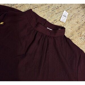 New! NY & Co Size L Burgundy Gold Side Button High Neck Blouse Old Money Smocked