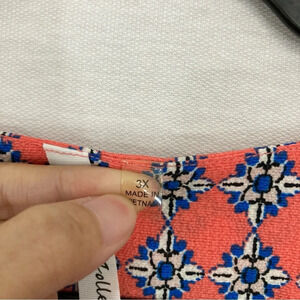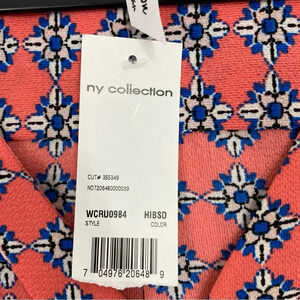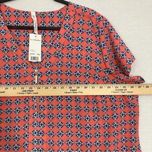 New NY Collection Red Blue Geometric V Neck Pullover Top 3X