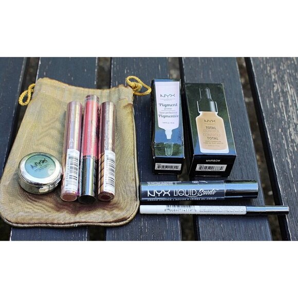 New - NYX Makeup Bundle, all sealed. 8 pieces in a gold mesh pouch. Retail $64.