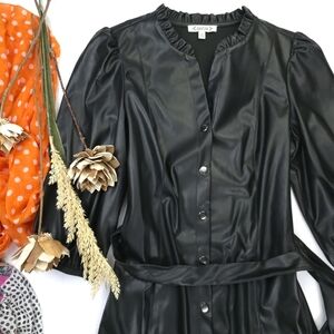 Chic black button-up dress by Nanette Lepore. Features a stylish tie waist and elegant design.
