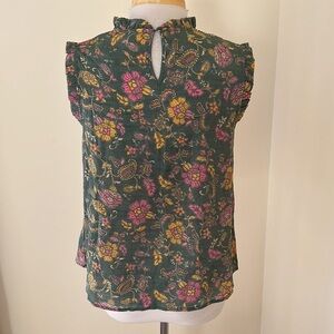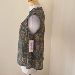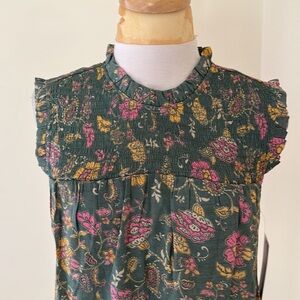 New! Nanette Lepore medium sage prairie green ruffled smocked blouse. Back one button keyhole closure .