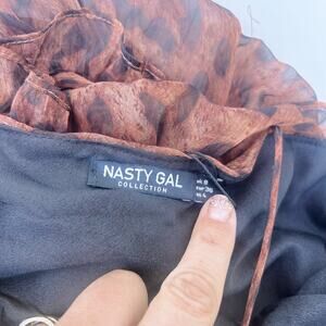 New Nasty Gal Black Magic Leopard Chiffon Ruffle Maxi Dress Long 4 Brown Formal