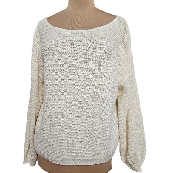 New Nasty Gal Cream Knit Sweater Pullover Medium Acrylic Drop Shoulder Boat Neck