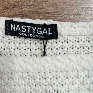 Keywords: Nasty Gal knit sweater, cream pullover, relaxed fit, drop shoulder sweater, medium acrylic sweater, cozy fall sweater, knit happens sweater, new with tags, slouchy, beachy, coastal,
