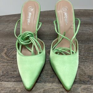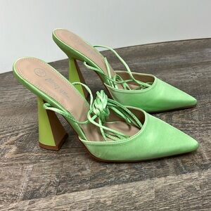 New Nasty Gal Satin Strappy Flared Court Heels -Lime Green Size 7
