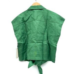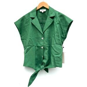 New Nation Ltd Los Angeles Noemi Tie Top Linen Crop Lawn Green Small Blouse