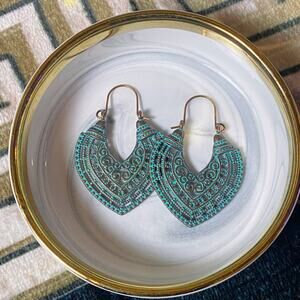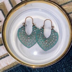New Native Boho Aztec Turquoise Patina Earrings Hoop Tribal Ornate Rustic