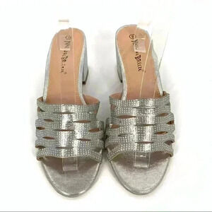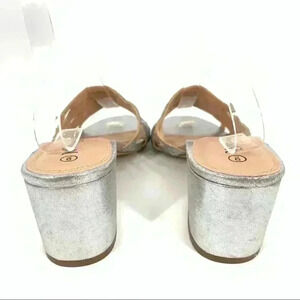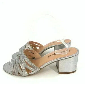New Nature breeze women heels size 9 silver metallic chunky slides mother of the bride formal