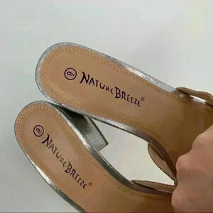 New Nature breeze women heels size 9 silver metallic chunky slides