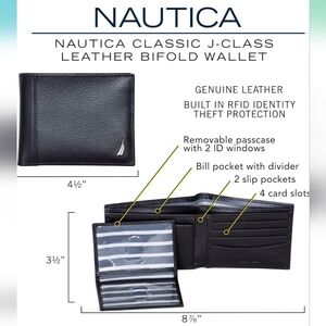 New Nautica J Class Dark Brown Men's Bifold Leather Wallet | RFID Blocking