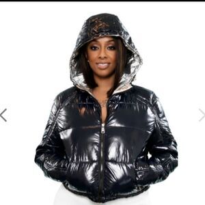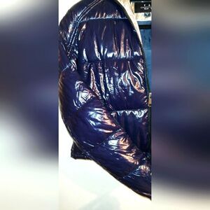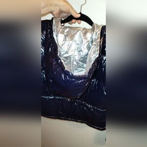 New Navy Blue & Silver Vegan Puffer Jacket Quilted LA Coalition-NWT