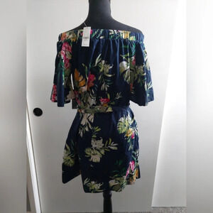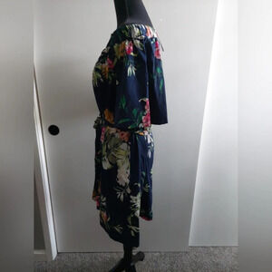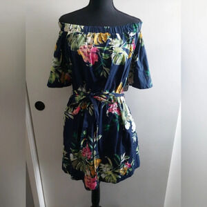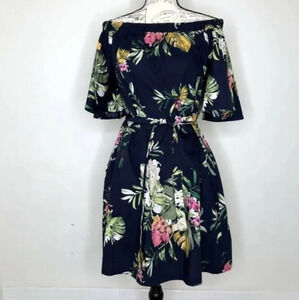 New Navy Floral Off the shoulder Trapeze Shift Mini Summer dress M