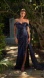 New Navy Off The Shoulder Evening Sheath Dress w/ Side Drape & Leg Slit CD393