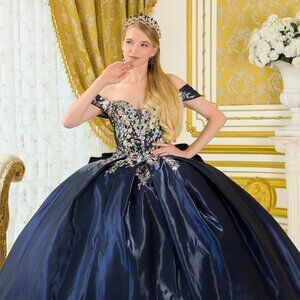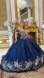 New Navy Off The Shoulder Quinceanera Floral Dress w/ Layered Skirt GL3792