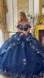New Navy Satin Ball Gown w/ Floral Lace Embroidery & Oversized Back Bow GL3793