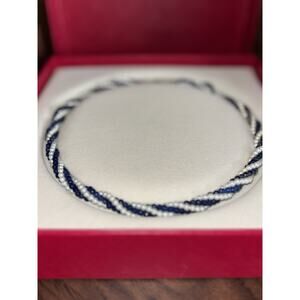 New Necklace Beaded Twisted French Rope Royal Blue And White. Condition is New with tags. Shipped with USPS Ground Advantage.