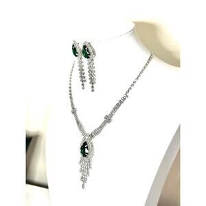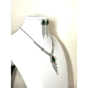 Another Stunning Necklace & Earring Jewelry Set, adorned with White/Clear & Emerald Green Rhinestones, Prong Set in Silver Tone Metal. Please see photos for close ups & measurements. As always, if you have any questions, please don't hesitate to ask & THANKS SO MUCH for stopping by BunnyBlvd!!!