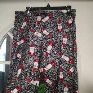 New without tag needy me pajama set size women's small. The top is red with santa armpit to armpit 18 inches. The pants are black with silver snowflakes and santa inseam 28 inches.
