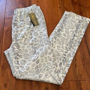New with tags. New Mix sparkle leggings silver white and black snakeskin pattern. Size L. Approx measurements across waist stretched 19” inseam 29”