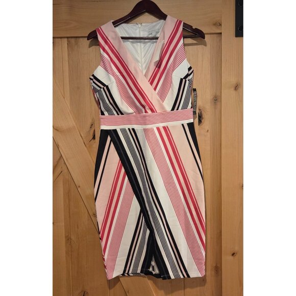 New! New York & Company Dress Pink Black Women's M Chevron Sleeveless Sheath NWT