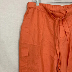 New New York & Company Orange Linen Blend Cargo Tie Front Pull-on Pants XL