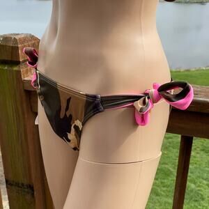 New Nicolita Women Green Camouflage Tie Sides Hipster Swim Bottom L