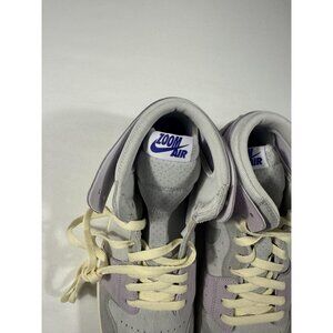 Colorway: Light grey and purple suede/textile upper with cream midsole, blue and grey rubber outsole, and cream laces.