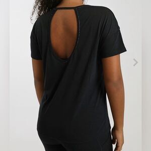 New! Nike Black/Dk Smoke Grey Yoga Dri-FIT Metallic Trim Women’s Top Sz Medium