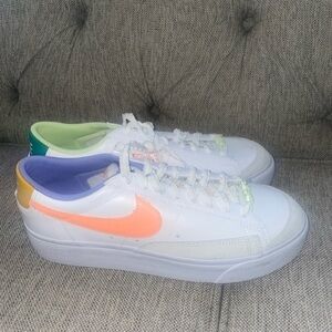 New Nike Blazer Low Platform sneakers in white and multi women size 11.5