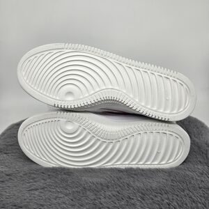 Street fashion meets hoops authenticity in the distinctly modern Nike Court Vision Alta. The detailed upper features an angled heel, crisp leather and sparkly gold glitter Swoosh logos to help you live out loud. So go ahead, embrace your flashy side.