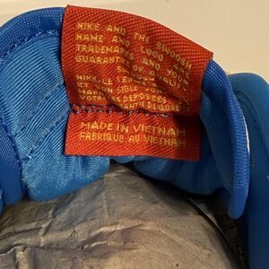 Details: Leather upper with perforated toe box and side panels, padded blue collar, mesh tongue with red Nike tongue label, lace-up closure, cushioned insole with Nike INC basketball graphic, and durable rubber cupsole with blue traction outsole. Includes original red Nike box.