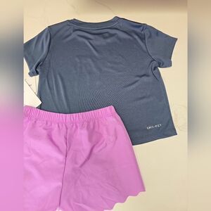 Nike set with a blue top and purple shorts. Comfortable and stylish for kids.