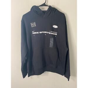 This is a brand new Nike men's hooded graphic sweatshirt in size large. It features a comfortable fit and a stylish graphic design. Perfect for everyday wear or workouts. Grab it now to upgrade your wardrobe!