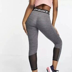 New Nike Pro Women’s 365 Mid-Rise Crop Leggings in Grey with Black Mesh Detail