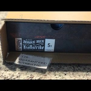 100% authentic brand new unworn Nike Roshe run trollstrike boxtrolls sneakers in a Sz 5. Also have a size 5.5 for sale in other listing. These are very rare and was only available to purchase via eBay auction or lottery style raffle via the film studio of the movie which is owned by Nike's founder Phil knights brother. Comes with everything: sneakers, elite socks and sugar sack bag and laser etched cardboard sneaker box all inspired by the film. Enjoy