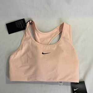 New Nike Dri Fit Swoosh Sports Bra Mid Impact Coral Pink Women's Small