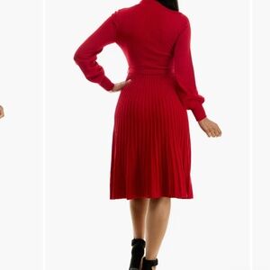 New Nina Leonard Red Tie Waist Fit & Flare Sweater Dress