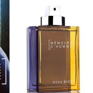 Memoire D'homme by Nina Ricci is a Woody Chypre fragrance for men. Memoire D'homme was launched in 2002. Memoire D'homme was created by Christine Nagel and Rosendo Mateu. Top notes are Licorice, Grapefruit and Pomelo; middle notes are Ginger and Nutmeg; base notes are Amber, Atlas Cedar, Vetiver, Opoponax, Myrrh, Ambergris and Musk.