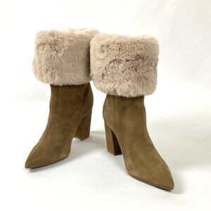 New Nine West Chrissa Dark Natural Suede Fur Cuffed Boot 8 & 10