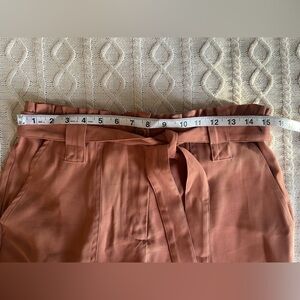 NWOT never worn! Beautiful rich light apricot rayon & polyester blend dress shorts by Nine West. Soft. Belt tie. Zipper/button closure. Front pockets. Measurements in photos. Women’s size 8. Smoke free home