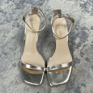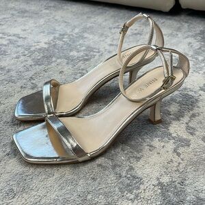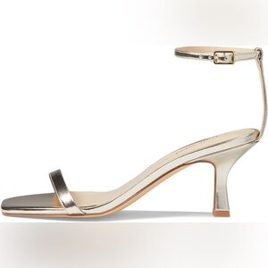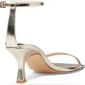 New Nine West Rani Pump Heeled Sandals Minimalist Metallic Gold Sz 5.5
