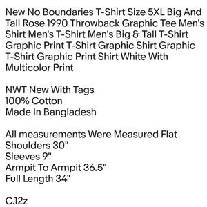 New No Boundaries T-Shirt Size 5XL Big And Tall Rose 1990 Throwback Graphic Tee