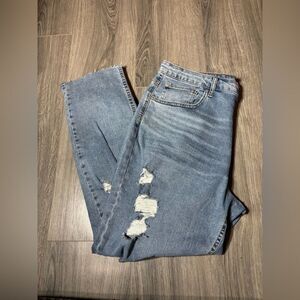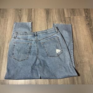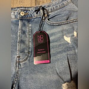 New! No Boundaries Relaxed Fit Stretch Denim Super High Rise Straight Distressed Button Fly Blue Jeans NWT Size 17