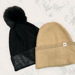 New Nordstrom BP. Bundle:Tan Knit Beanie, Black Metallic Knit Beanie - One Size