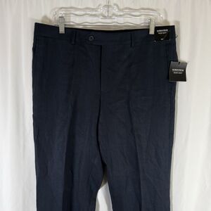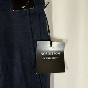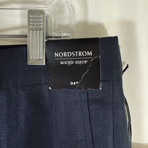 New Nordstrom Men's Shop Linen Pants Men's 34R Navy Blue Flat Front Office Work