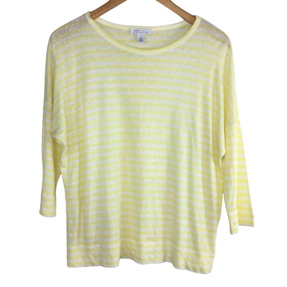 New Nordstrom Signature 100% Linen Striped T-shirt Yellow White Top Small $129