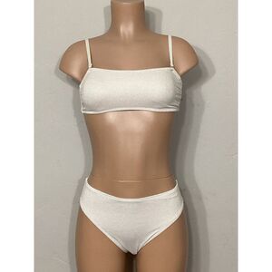 New. Nordstrom ivory & gold metallic thread bikini. Bandeau bikini top with removable straps. Soft removable pads.
