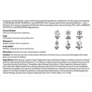 Indulge in the ultimate hydration experience with Nutrius Brazilian Body Butter Cream Berry Bliss. Luxuriate in a rich blend of Acai, Mango, Cocoa, and Cupuacu, nourishing your skin to softness and suppleness. Let Vitamin C revitalize your complexion for a radiant glow. Crafted with a vegan, cruelty-free formula, it upholds ethical skincare practices. Enjoy its silky-smooth texture, absorbing quickly without any greasy residue, leaving you feeling pampered and refreshed!